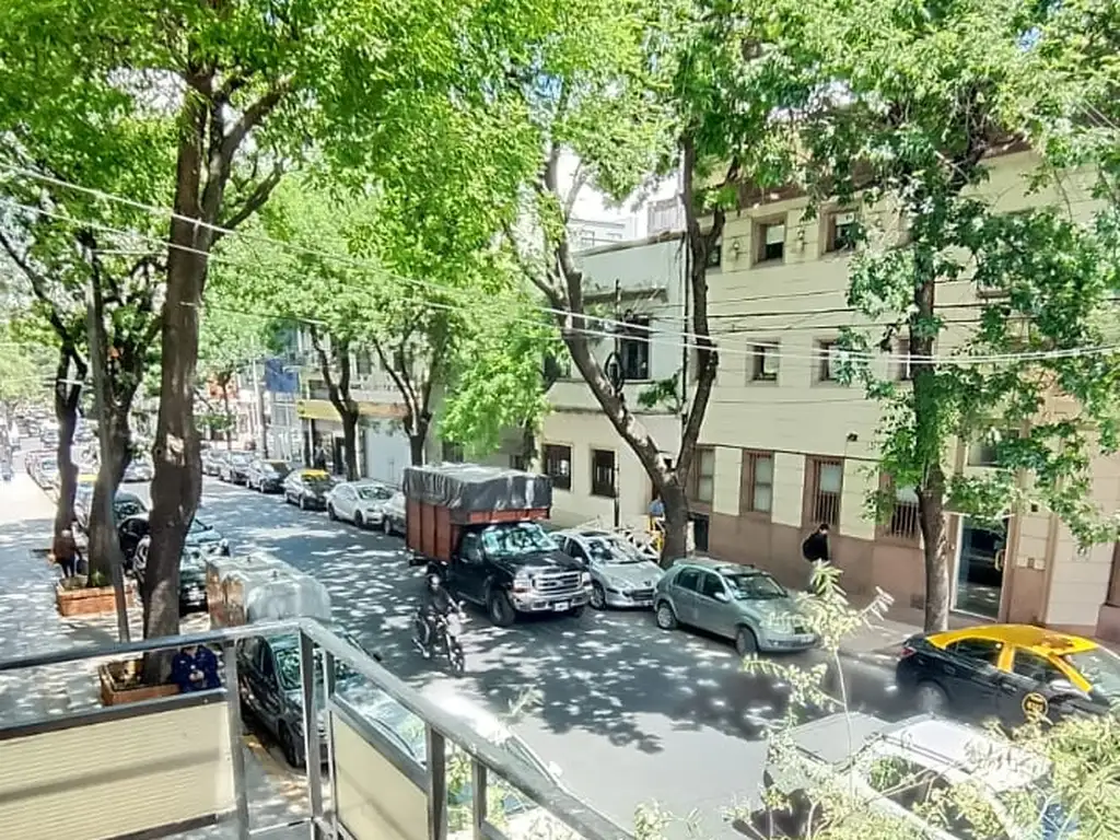 Departamento de 2 ambientes con balcon al frente sobre calle Salguero al 1200 con Sol directo, 1° piso por escalera, orientacion este, pisos de parquet pulidos y plastificados en sus dos ambientes, cocina integrada al living, el mismo con salida a balcon de 2.60 x 1.