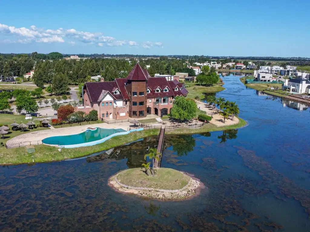 El desarrollo cuenta con lagunas navegables y sectores residenciales organizados en lotes.