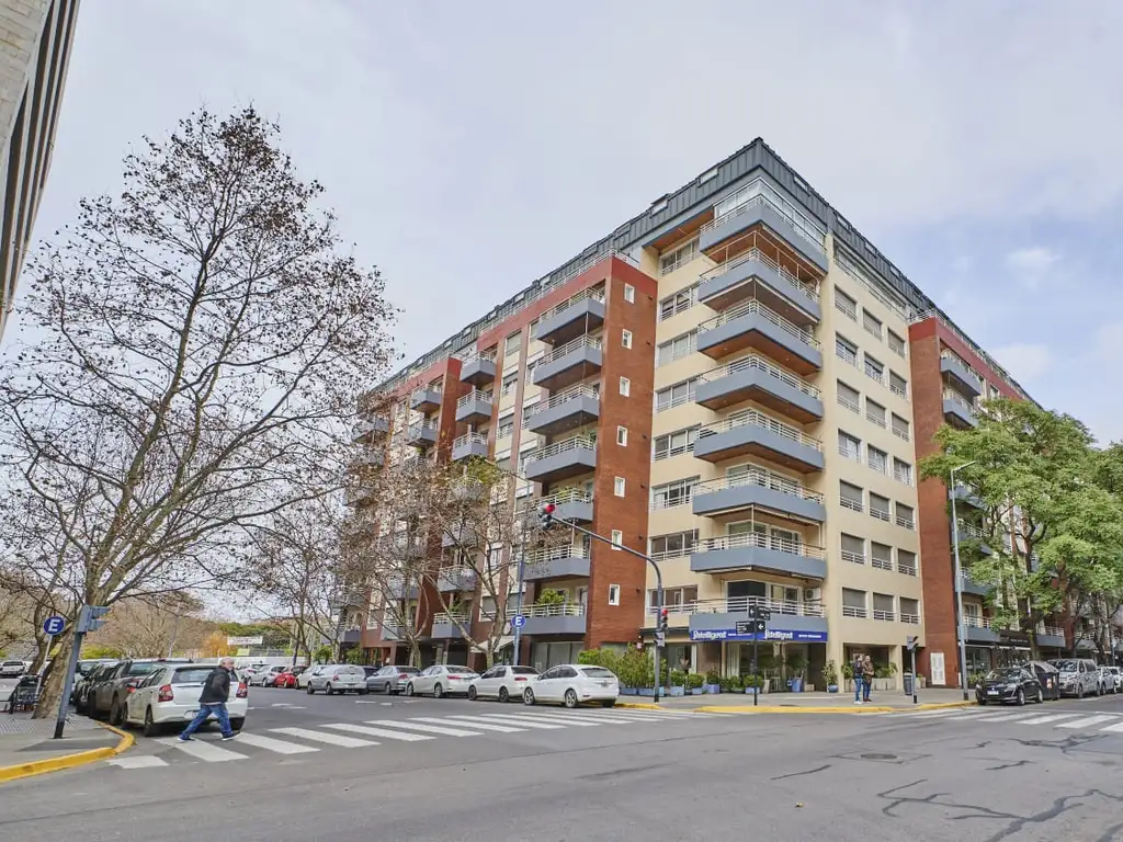El edificio ofrece amenities de primer nivel: parque de 2.500 m², 2 piscinas templadas, spa con hidromasaje y sauna, gimnasio completo, salón de eventos y laundry.