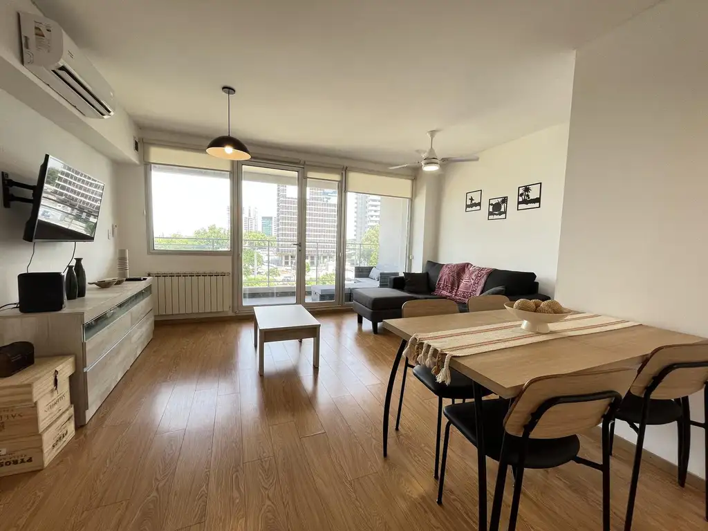Alquiler temporario departamento de un dormitorio con balcón y cochera. Rosario, Puerto Norte