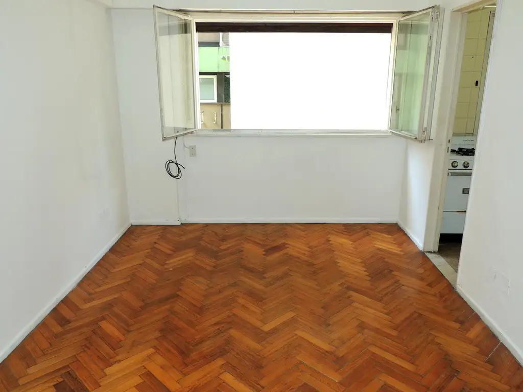 Consta de 1 ambiente con piso de parquet, placard empotrado y gran ventana al lateral de iluminación y ventilación con persiana de enrollar.
