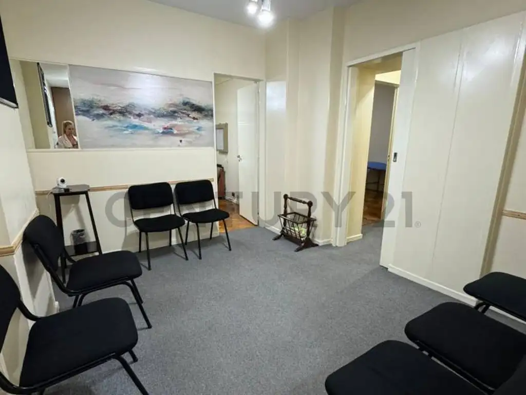 * Ingreso y Recepción: Se accede a un ambiente que puede funcionar como living-comedor o sala de espera, con piso de alfombra en excelente estado.