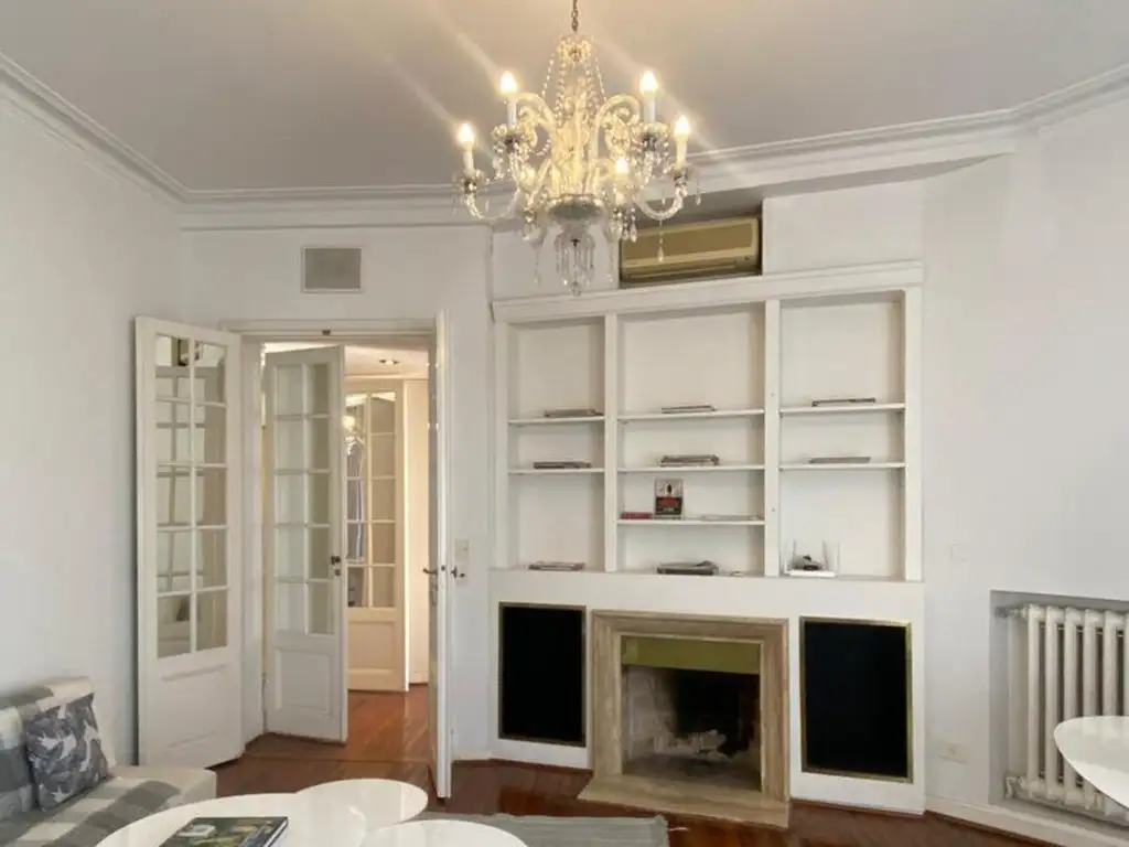 Muy buen departamento de 3 ambientes amplios, en edificio de estilo francés con vista abierta a Av. del Libertador. Living con chimenea , comedor separado, cocina independiente, toilette. 2 dormitorios uno de ellos en suite con vestidor y el otro es tipo escritorio, ya que es el paso para el dormitorio principal. Además, dormitorio de servicio con baño. Tiene un baño completo , un toilette y baño de servicio.