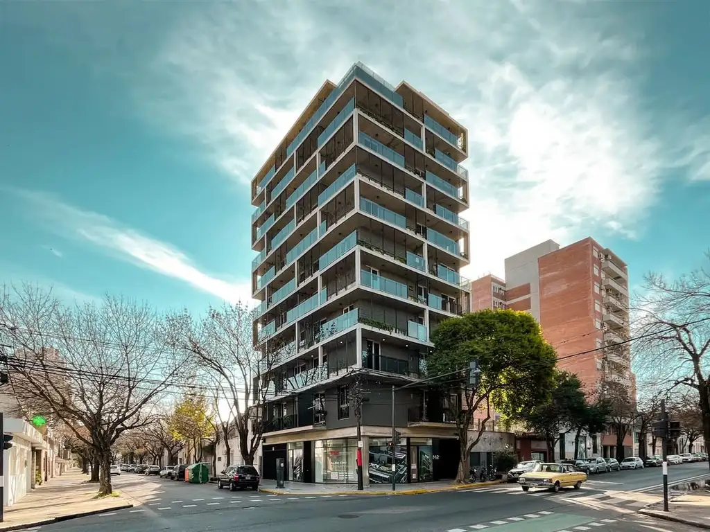Toda la unidad dispone de luminarias y cortinas blackout a medida, conectando con un balcón corrido de vista despejada. Unidad con gas.