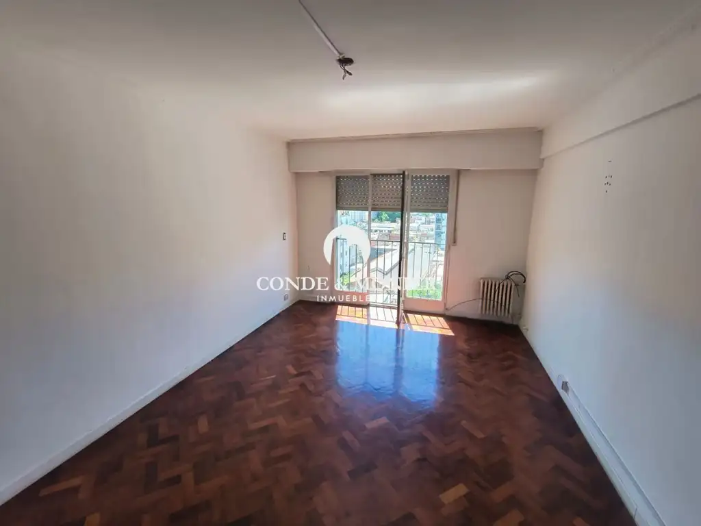 Amplio departamento, living comedor, balcón francés al frente con vista abierta dormitorio al frente con placard, segundo dormitorio con placard al contrafrente, cocina separada, baño completo, recién pintado, pisos de madera recién pulidos y plastificados. muy luminoso en todos sus ambientes. Inmejorable ubicación.