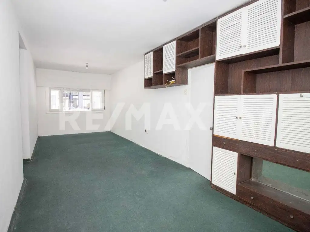 Living-comedor amplio de 30 m², con grandes ventanales al frente que aportan luminosidad y una biblioteca amurada, generando un espacio versátil y confortable.