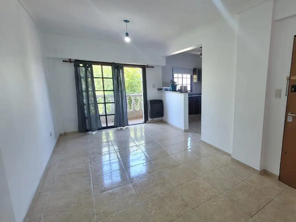 DEPARTAMENTO DE TRES AMBIENTES CON DOBRE ORIENTACION Y DOBLE BALCON. INGRESO AL LIVING COMEDOR CON PISOS CERAMICOS, ESTUFA DE TIRO BALANCEADO, BARRA DIVISORIA HACIA LA COCINA. BAJO MESADA Y ALACENA EN MELAMINA, MESADA EN MARMOL EN ESQUINA CON VENTANAL AL FRENTE, ARTEFATO DE COCINA