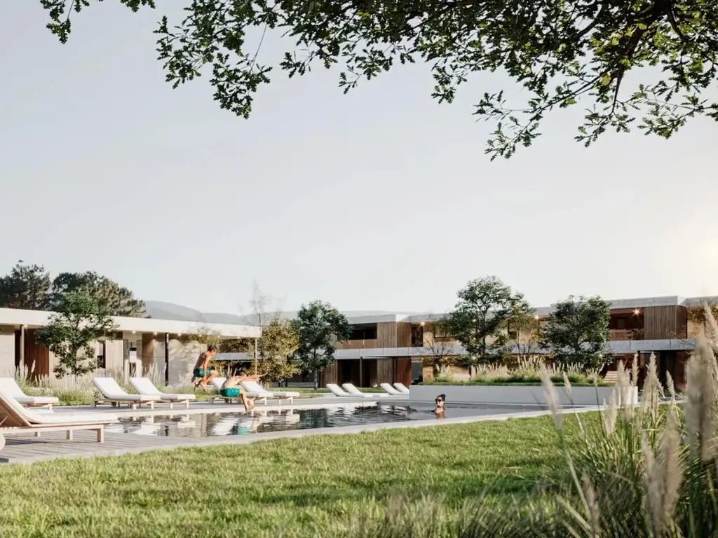 Amenities de primer nivel: SUM con asador, living flexible, oficinas y espacio de coworking, gimnasio, pileta, cancha de tenis y un sendero con bicisenda que recorre todo el predio.