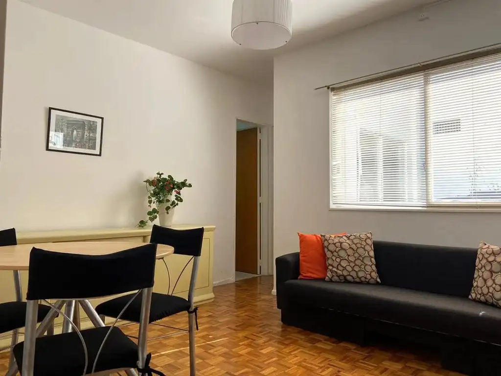 Pisos de madera. Living comedor con sillón cama. Cama doble con sommier. Amplios placares. Ropa blanca incluida.