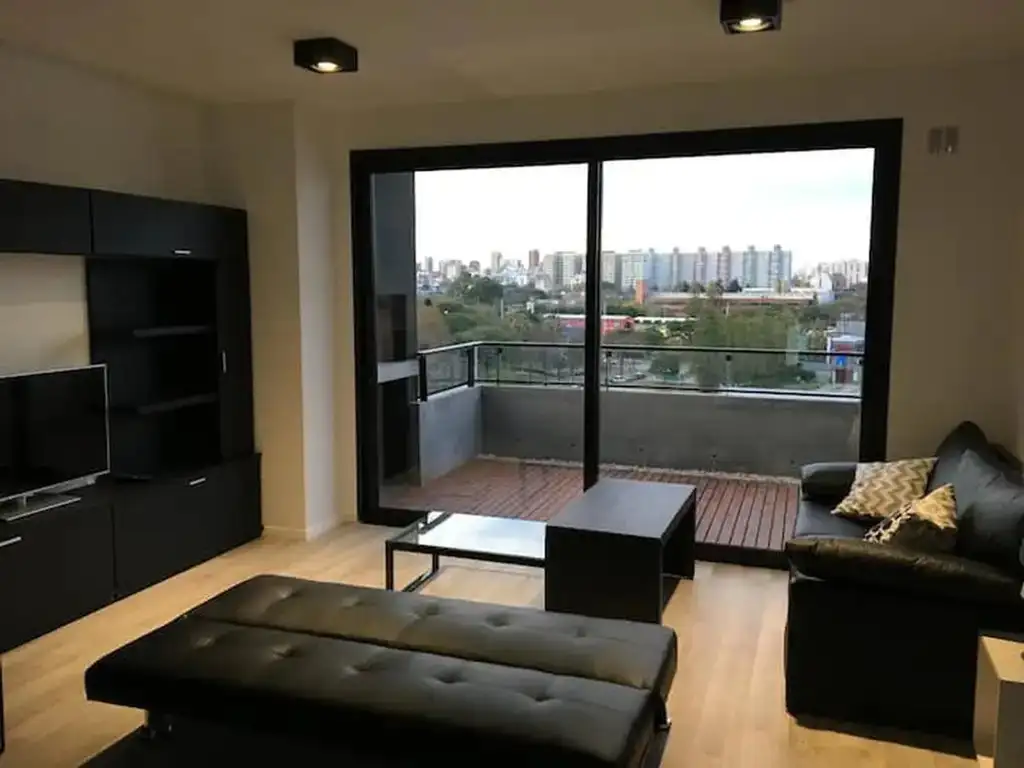Departamento semipiso al frente con vista abierta a la ciudad muy luminoso de 2 ambientes, 1 dormitorio en alquiler temporario.
