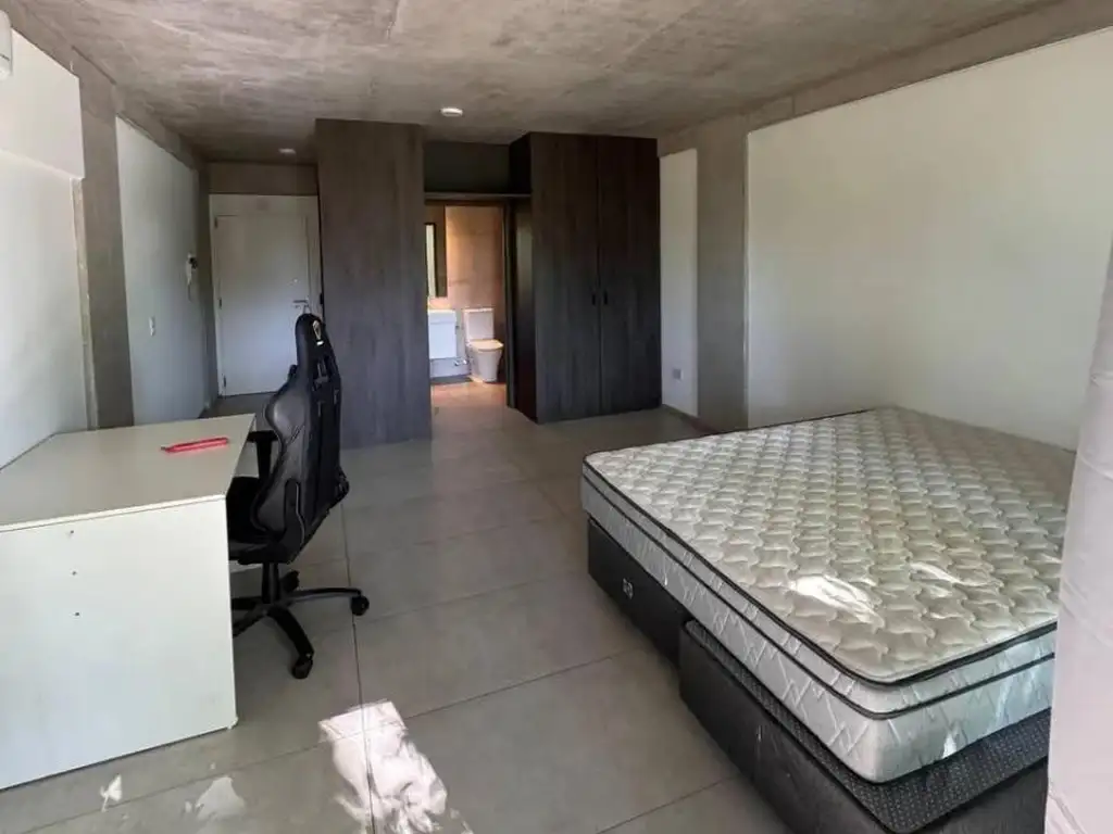 La unidad cuenta con 50 m2 totales (45 m2 cubiertos), distribución amplia y funcional, y un estilo contemporáneo con detalles de calidad. El ambiente principal es cómodo y luminoso, equipado con cama de dos plazas, escritorio de trabajo, y excelente espacio de guardado.