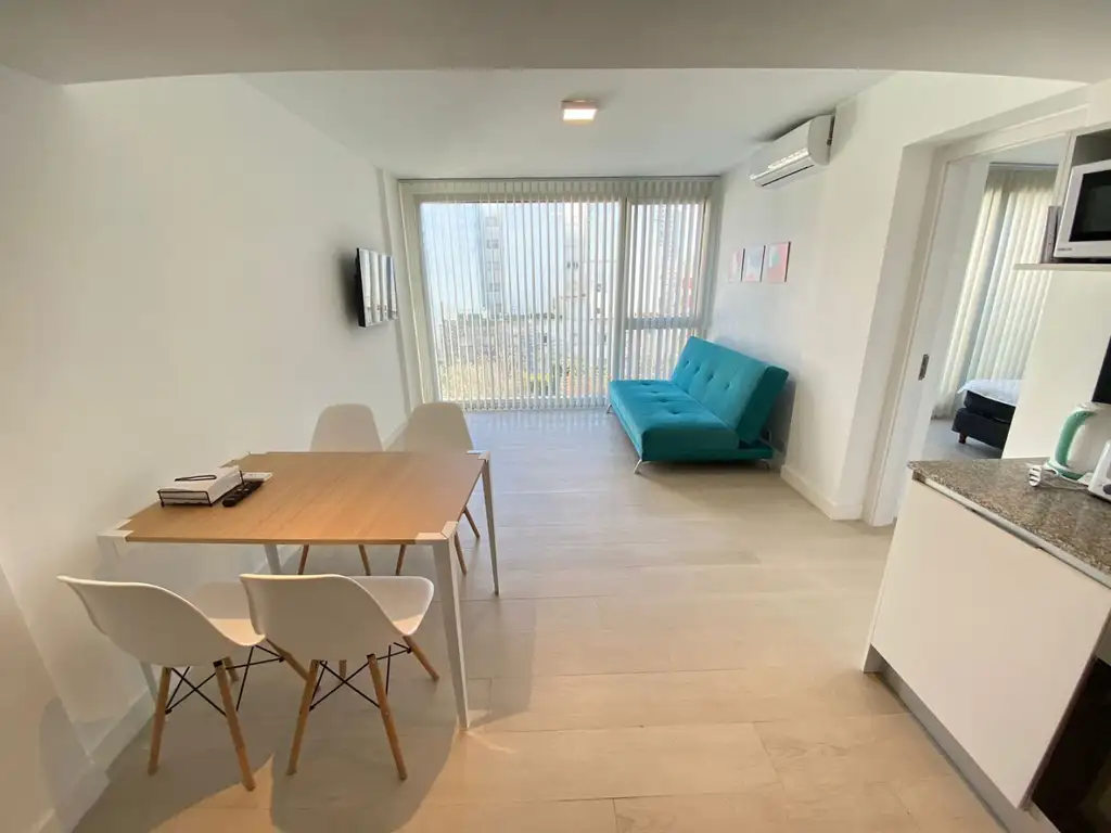 Al ingresar encontramos un luminoso living, que cuenta con un sofá cama de dos plazas y un TV Smart 32? con CABLE DIGITAL.