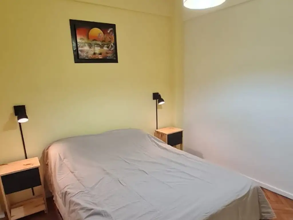 Amplio departamento con un habitacion, un living comedor, una cocina separada con lavadero. No tiene aire acondicionado. Hay un ventilador.