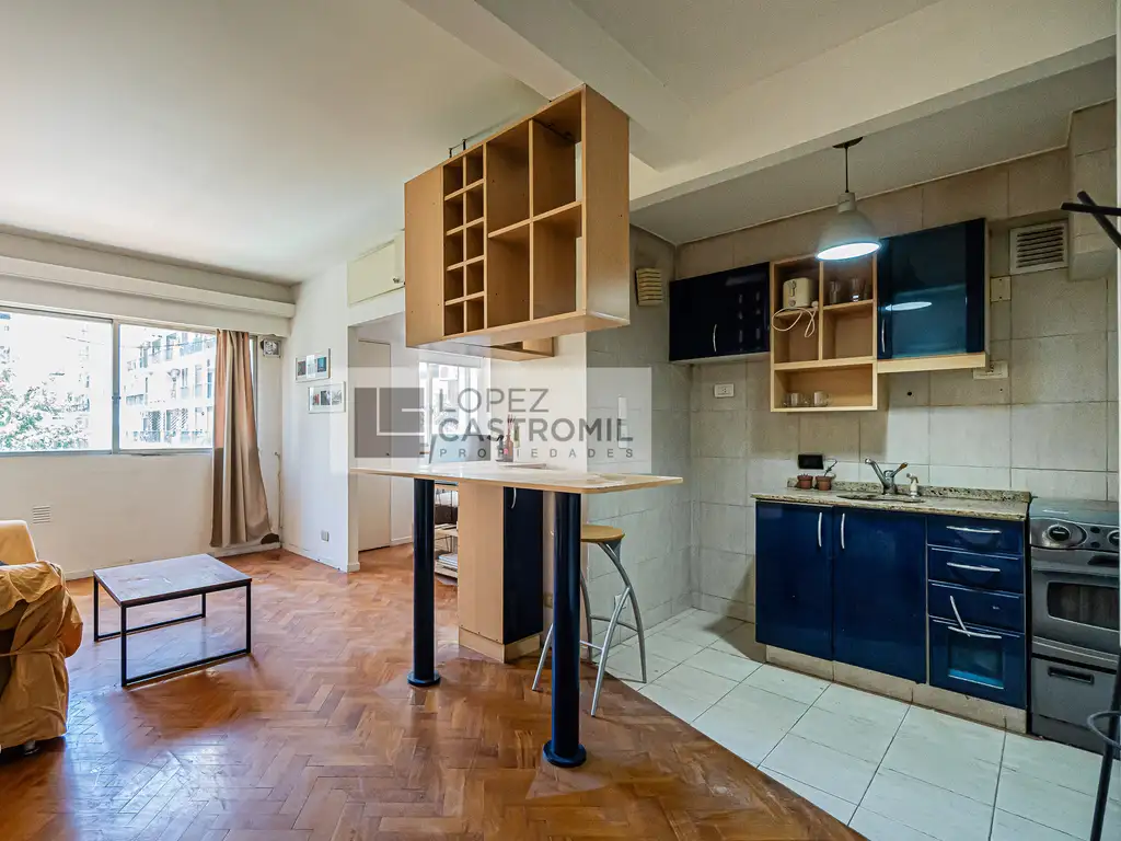 IMPECABLE MONOAMBIENTE DIVISIBLE! Espectacular vista abierta! Todo luz y sol! AMOBLADO! Vigilancia 24hs! ÚNICO! OPORT!