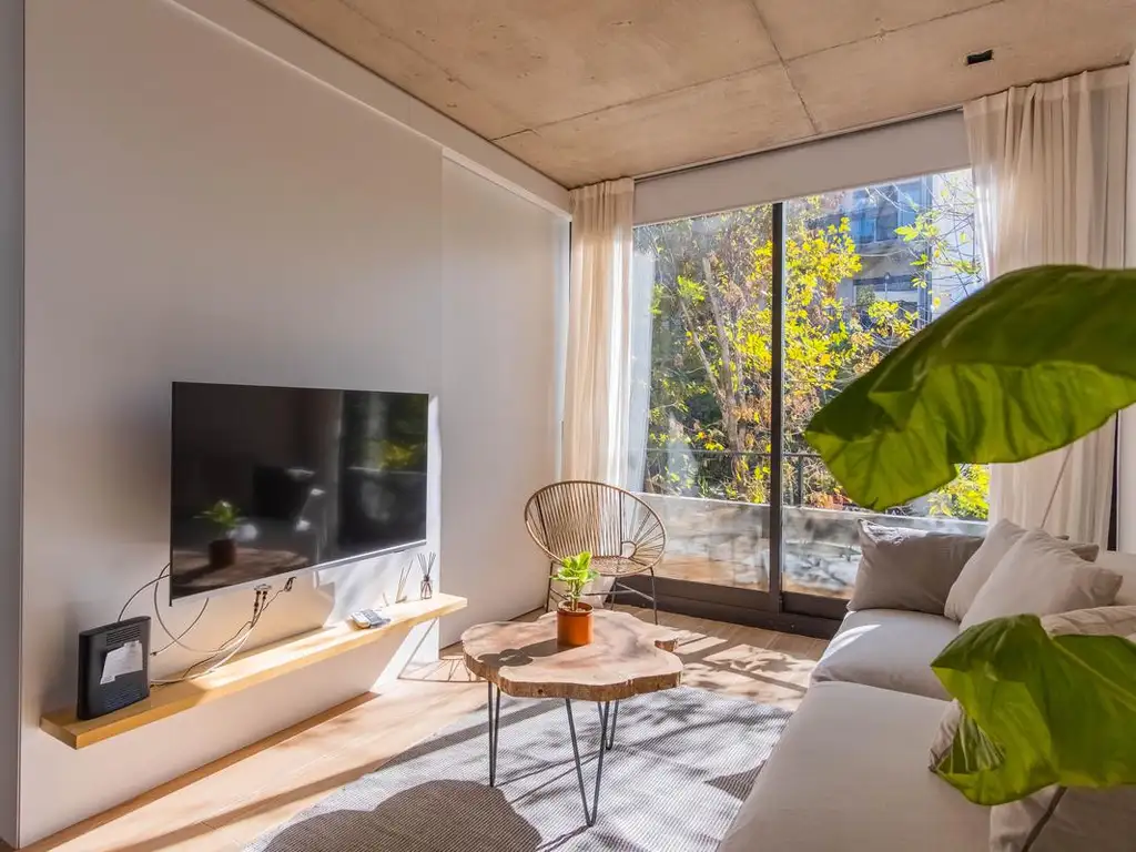 Ubicado en edificio boutique. La unidad cuenta con un amplio living comedor totalmente equipado con mesa y sillas, sofá cama, TV Smart y Split frío/calor. El mismo posee salida a gran balcón con vista al frente. La cocina se encuentra incorporada al ambiente y contiene heladera con freezer, horno empotrado, anafe, microondas, cafetera, vajilla completa y todos los elementos necesarios para cocinar.