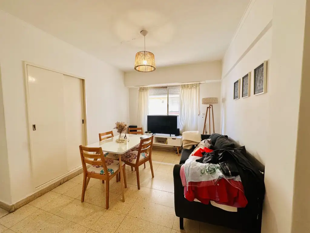 FICHA 1687: Departamento de 2 ambientes interno, con cómoda cocina integrada separada. Living comedor con tv por cable,sillón y mesa comedor. El dormitorio presenta pisos de parquet, cama matrimonial y placard empotrado. El baño es completo, con bañera y ventana. Muy buena ubicación, a solo 100mts del mar y Plaza Colón.