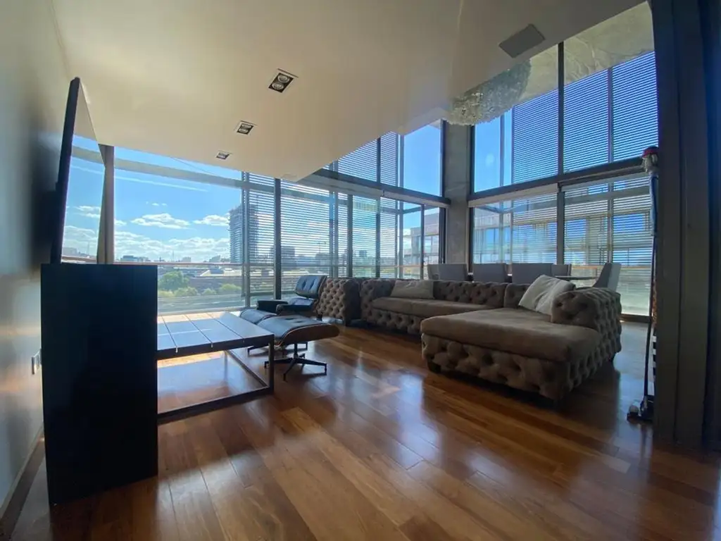 increíble propiedad ubicada en un piso alto con disposición al frente, se encuentra desarrollada como duplex, en 2 plantas. Para acceder lo hacemos por una cerradura eléctrica la cual posee la opción de huella digital o por código, al ingresar nos encontraremos con un hermoso living la cual se encuentra rodeada de ventanales corredizos que nos da acceso a un hermoso y espacioso balcón aterrazado.
