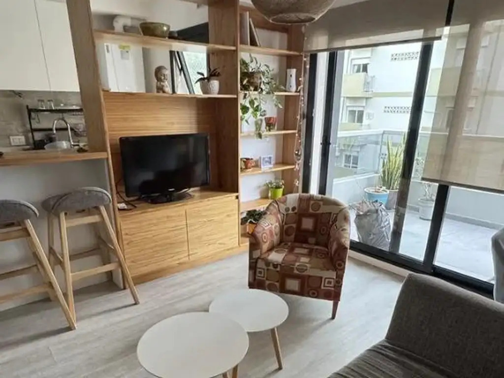 Distribución: Amplio living-comedor totalmente equipado y dormitorio independiente.