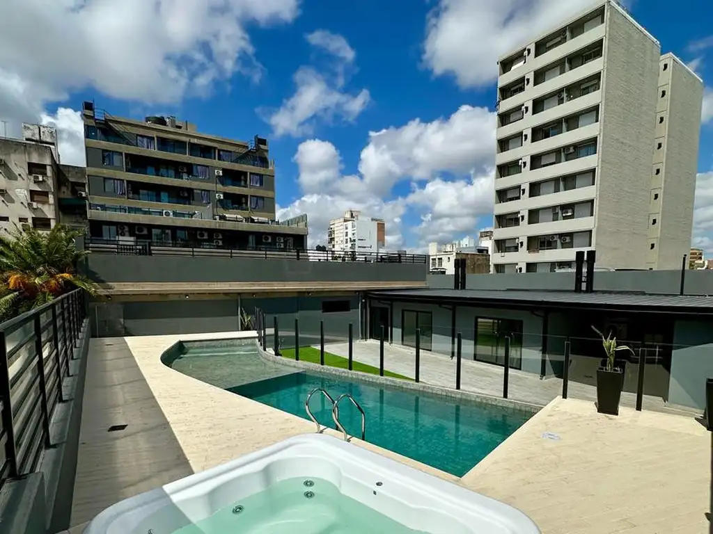 Complejo con amenities, 2 Quinchos con parrilleros, Piscina, Gimnasio, Hidromasaje, Solarium.