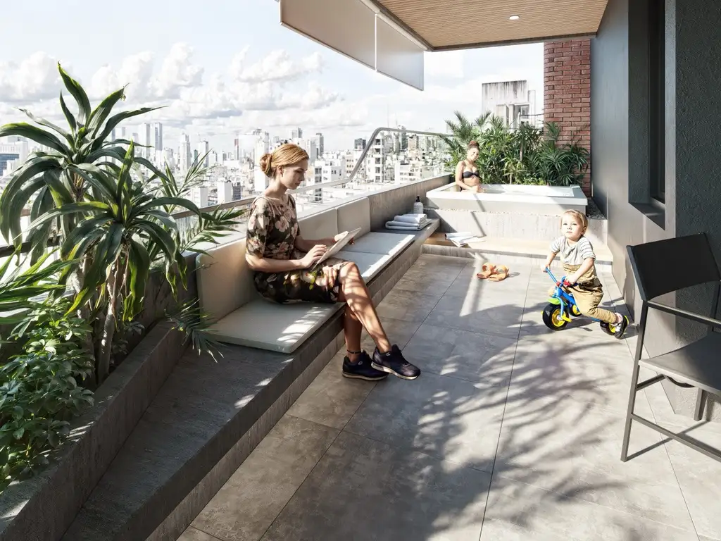 El proyecto cuenta entre otros servicios, con:- Espacio para bicicletas- Gimnasio totalmente equipado- Balcones aterrazados equipados con piscina y parrillero, con orientación Norte.- Terraza de uso común equipada con amenities premium, que incluyen piscinas, quincho y gimnasio.