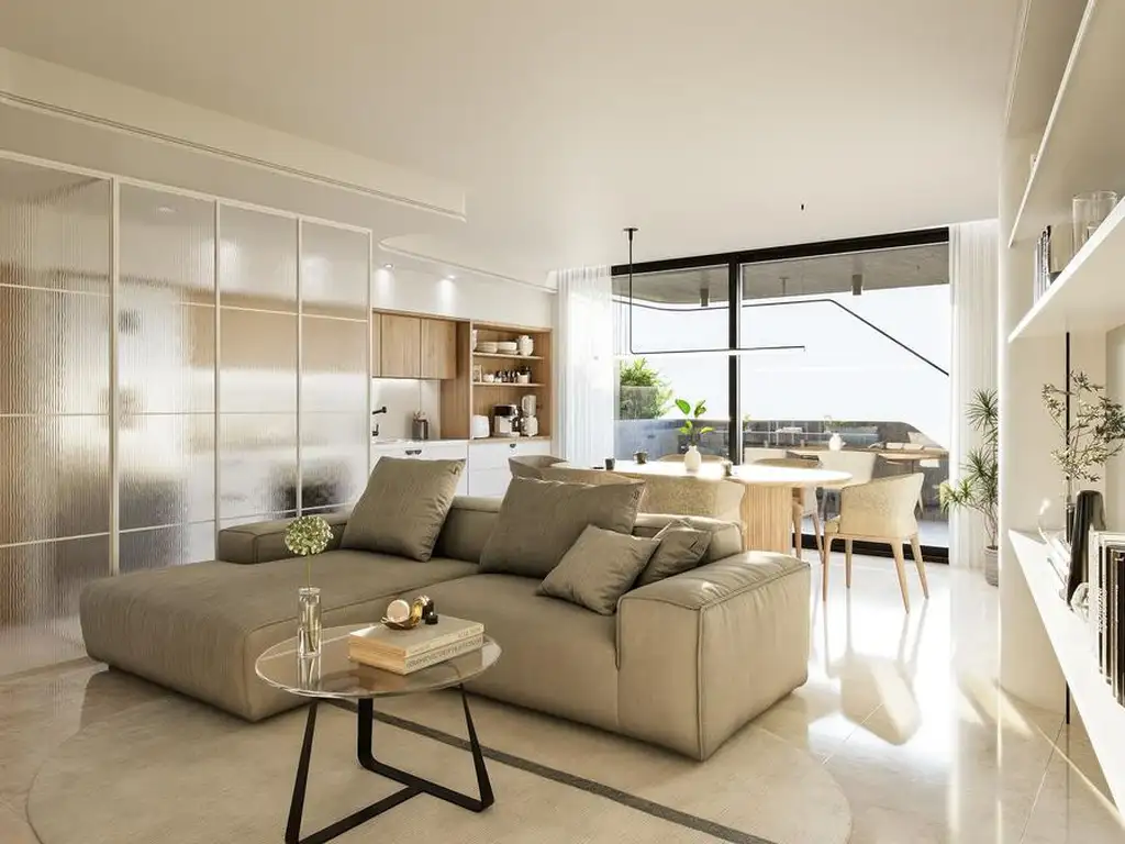 Amplio living comedor con salida al balcón de la propiedad y con cocina semi integrada con una gran isla y sector independiente para lavadero. La misma cuenta con alacenas y bajo mesadas de diseño: MDF 18mm laminados con filos de PVC, zócalos de acero inoxidable, iluminación en mobiliario, mesadas de diseño, bacha de acero inoxidable con griferías de primera línea, horno embutido y anafe separados sobre mesada, espacio provisto para purificadores de aire, mobiliario para lavarropas y termotanques. Segundo baño completo con sanitarios y griferias de primera línea, vanitory de diseño o mesada de mármol con bacha de apoyo, accesorios de baños y espejo retroiluminado, diseños en cielorraso con iluminación difusa.