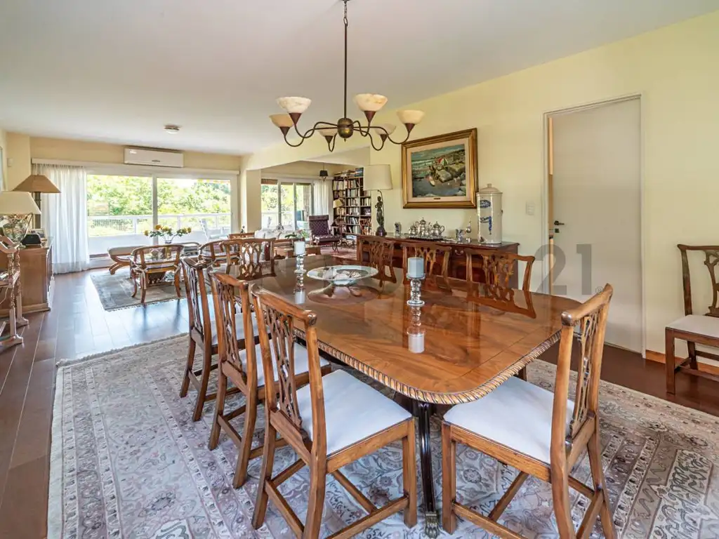 Amplio y luminoso, en “L”, con ventanales de piso a techo y salida a balcón terraza. Vista abierta al Hipódromo de San Isidro. Excelente ingreso de luz natural. Aires acondicionados.