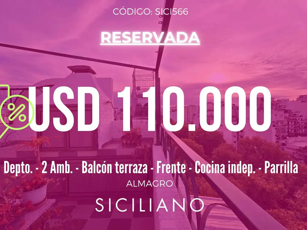 Departamento con balcón terrazón al frente