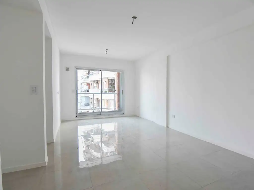 - La unidad se desarrolla en un primer piso al contra frente, cuanta con puerta de seguridad en el ingreso al departamento, pisos de porcelanato en todos los ambientes, living comedor con espacio para escritorio o posibilidad de armado de un mueble a medida para guardado con luces led, salida al balcón con carpintería de exteriores de aluminio con DVH.