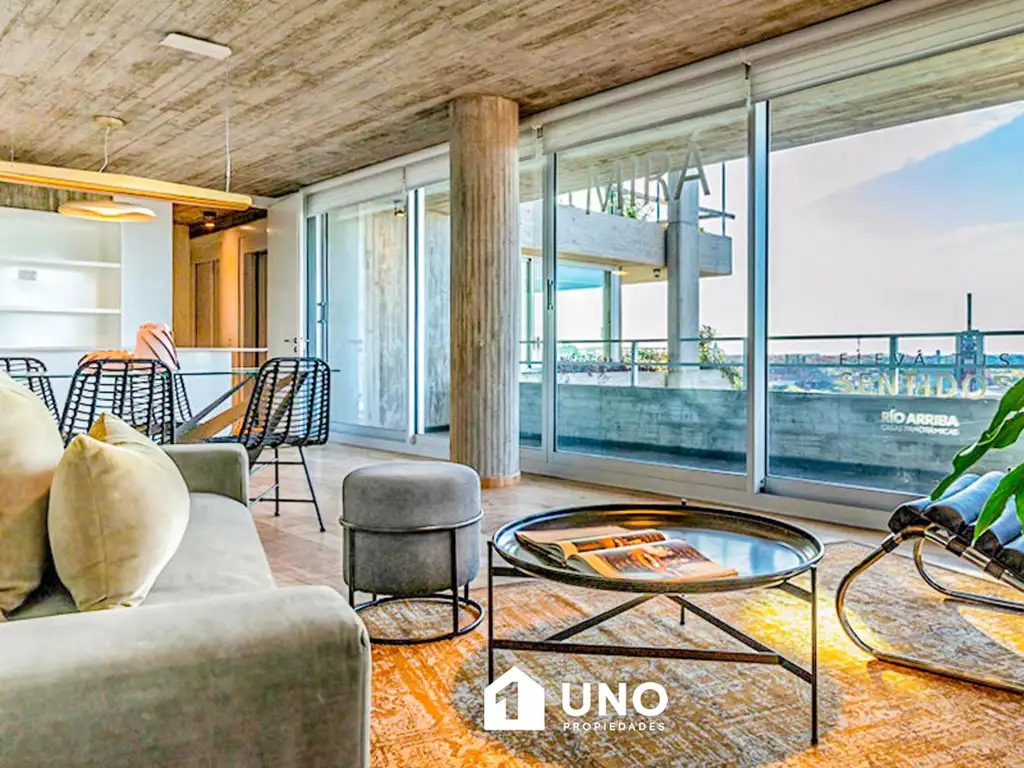 Al norte se encuentra el estar/comedor, muy luminoso, completamente vidriado, con salida a un segundo balcón aterrazado con vista parcial al río.
