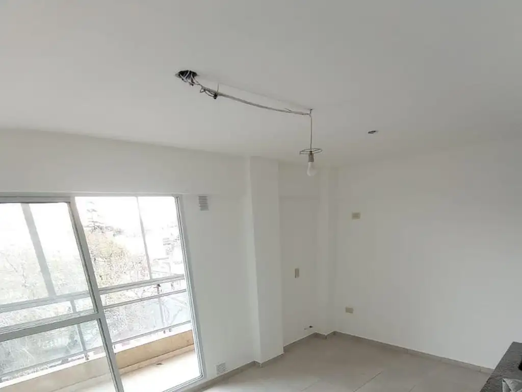 Monoambiente con balcón corrido al frente es un cuarto piso tiene pisos cerámicos bajo mesada alacena sector para cocina sector para lavarropas sector para heladera con preinstalación para aire acondicionado y preinstalación para calefactor tiro balanceado baño con ducha