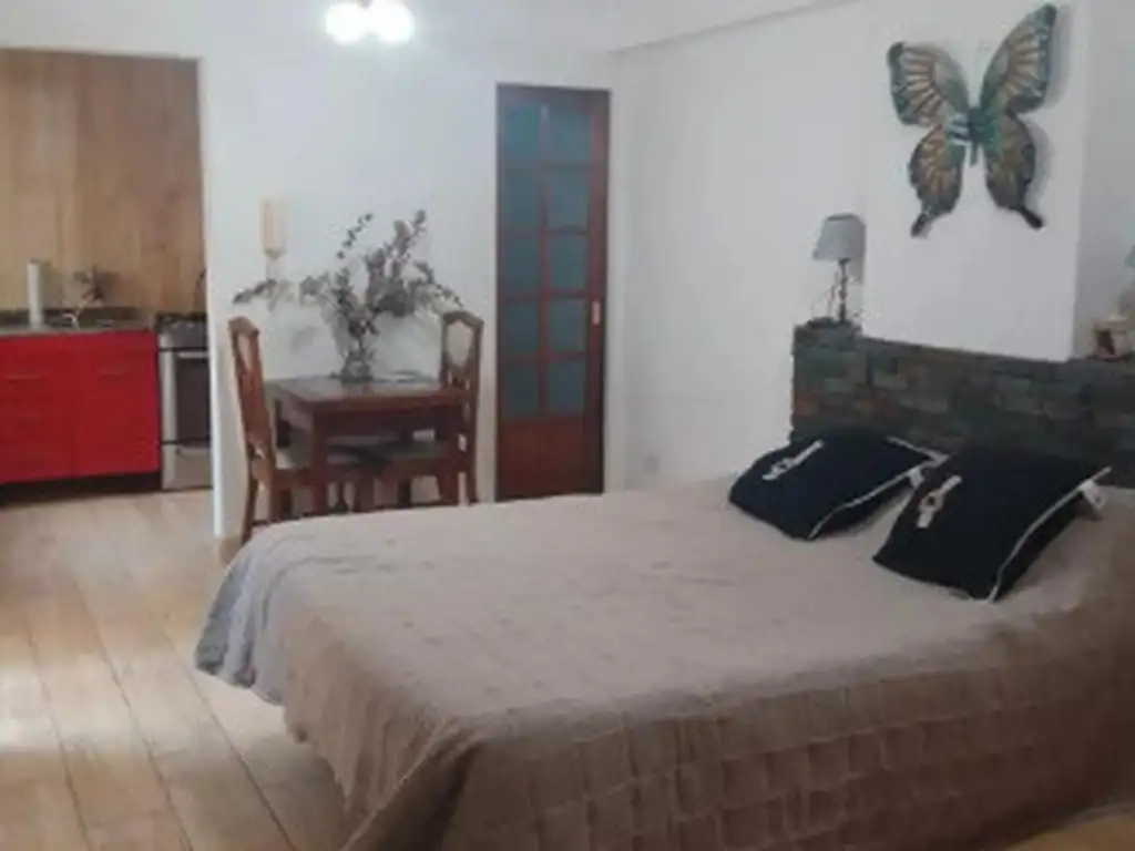PROPIEDAD CON UN METRAJE APROXIMADO DE 35 M2 TOTALES, DISTRIBUIDOS EN SU ÚNICO AMBIENTE, LUMINOSO Y VENTILADO, EL CUAL POSEE GRAN PLACARD DE PISO A TECHO Y VENTANAL CON SALIDA AL PATIO; COCINA INDEPENDIENTE CON SUS RESPECTIVOS MUEBLES BAJO MESADA Y VENTILACIÓN; BAÑO COMPLETO CON DUCHA DE PIE; Y PEQUEÑO PATIO A PULMÓN DEL EDIFICIO.
