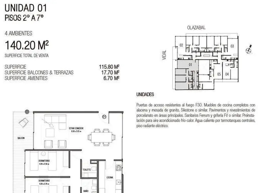 Consta de 8 pisos con unidades de 2, 3 y 4 ambientes. En el piso 8 unidades con hermosos balcones aterrazados.