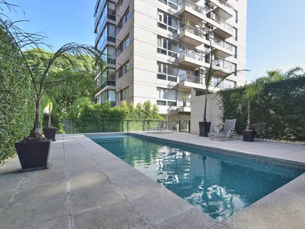Edifico con seguridad 24hs, gimnasio, ping-pong, sauna, pileta, parrilla, sum y jardín.