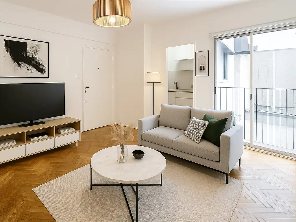 La cocina a gas, equipada con muebles altos y bajo mesada, aprovecha al máximo cada rincón, ofreciendo practicidad y comodidad. El living comedor, con vista a un silencioso pulmón de manzana, invita a disfrutar de un ambiente cálido y sereno, ideal para relajarse. Los pisos de parqué originales aportan carácter y un toque clásico que realza su estilo.
