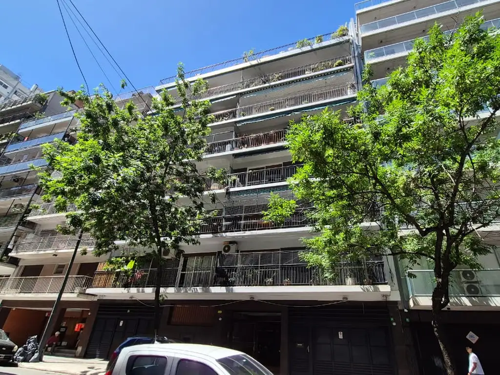 El edificio tiene 8 pisos y 4 departamentos por piso, con ascensor y encargado. La propiedad incluye 1 cochera móvil cubierta. La antigüedad es de 50 años. El entorno ofrece cercanía a diversos comercios, servicios y transporte público, haciendo de esta una excelente opción para vivir y bien conectada.