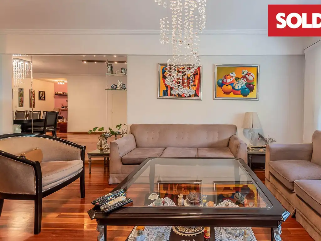 - Living Comedor: muy Amplio y luminoso, con pisos de madera y salida a balcón aterrazado con vista abierta y AA.