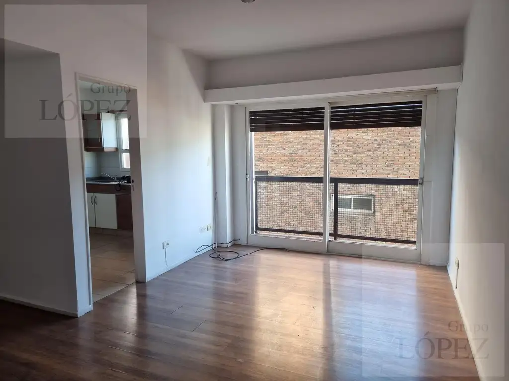 Excelente departamento recién pintado, con muy buena distribución y espacios amplios. Cuenta con un living en L de 5 x 4,85 m y comedor de 2,50 x 4,50 m, ambos con pisos de parquet.Dispone de dos dormitorios: uno de 2,90 x 3,30 m con salida a balcón, y otro de 3,70 x 3 m, ambos con muy buena ventilación. El hall de distribución de 3,70 x 1 m posee placard empotrado con baulera y espacio de recepción.