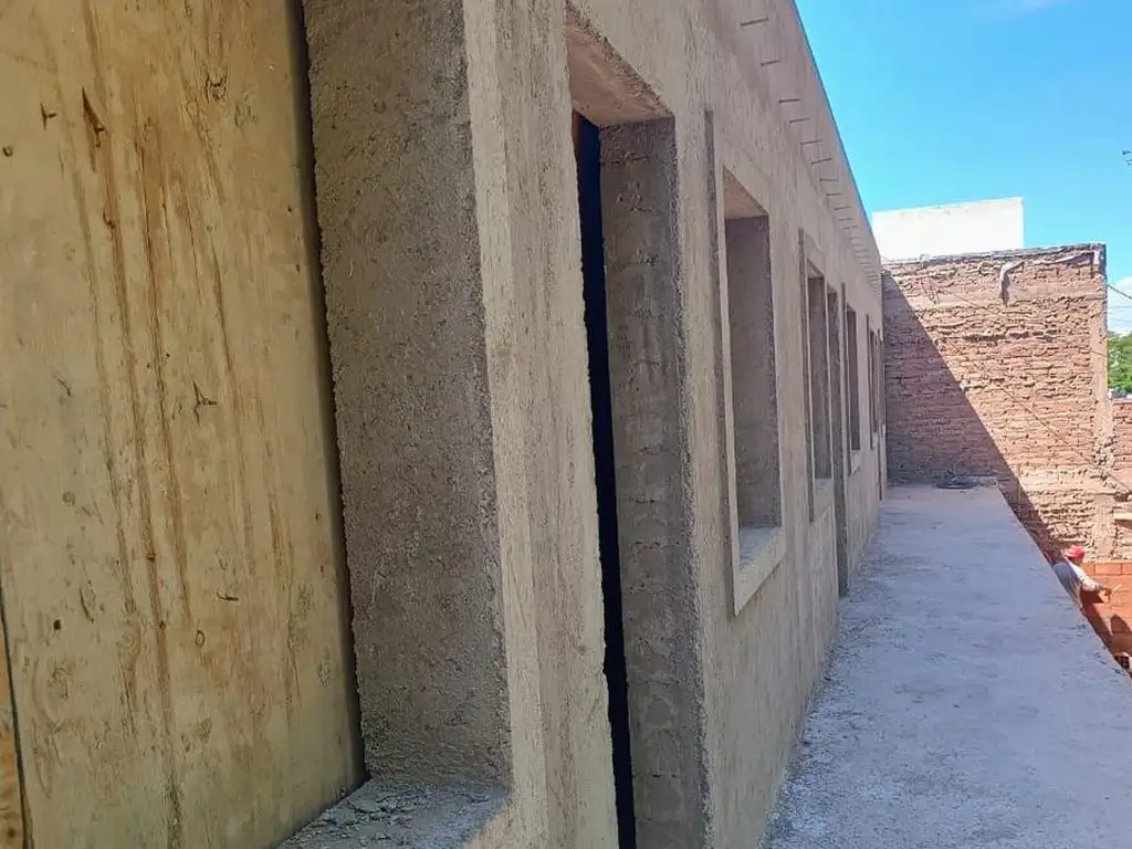 Hall distribuidor, antebaño y baño completo con ducha. Dos dormitorios. Patio con churrasquera. Carpintería de aluminio y pisos de cerámicos.