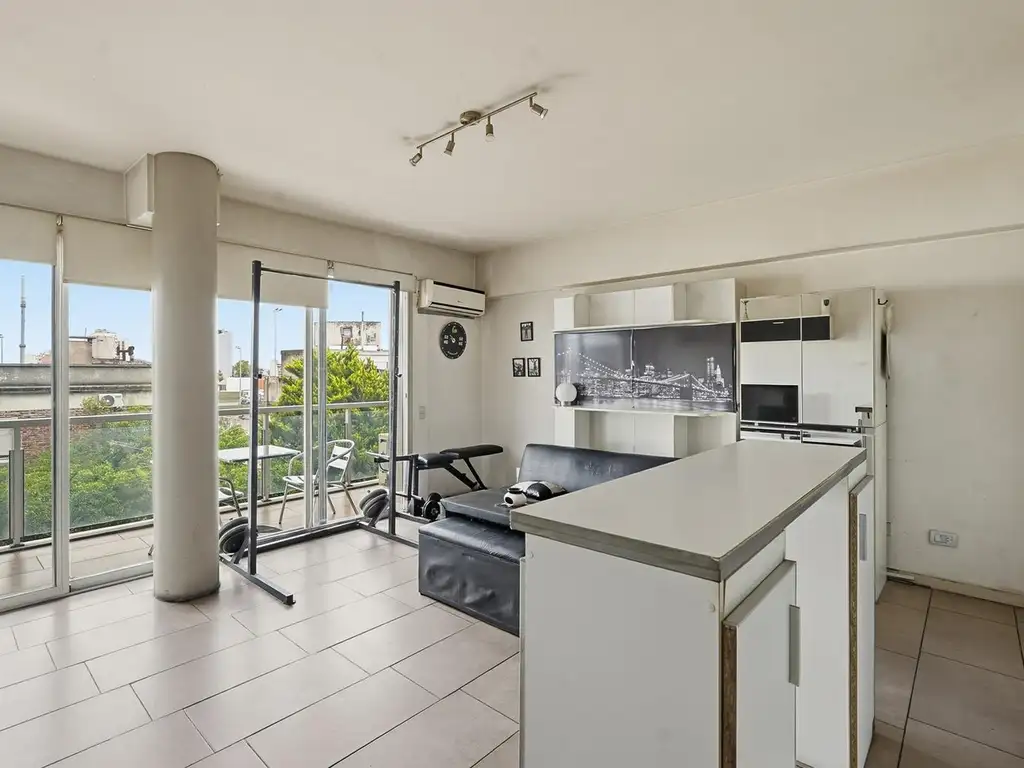 Ambiente único muy funcional y con salida a balcón al frente.