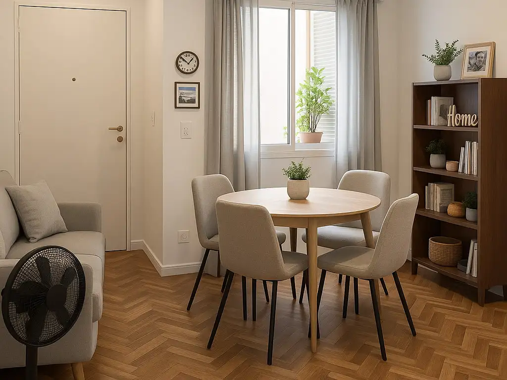 Living comedor amplio y luminoso, con posibilidad de modernizar con detalles de pintura y luz.