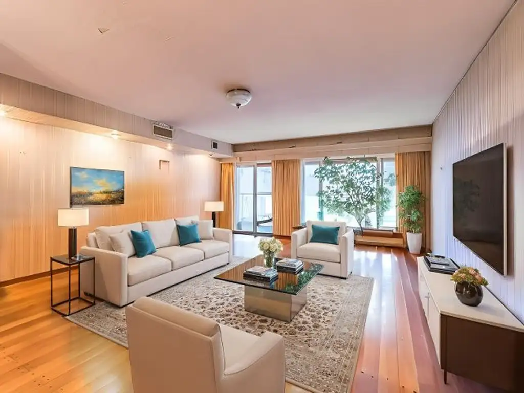 El departamento cuenta con Entrada principal con palier privado. Se ingresa al living comedor que comunica al balcón y doble circulación.