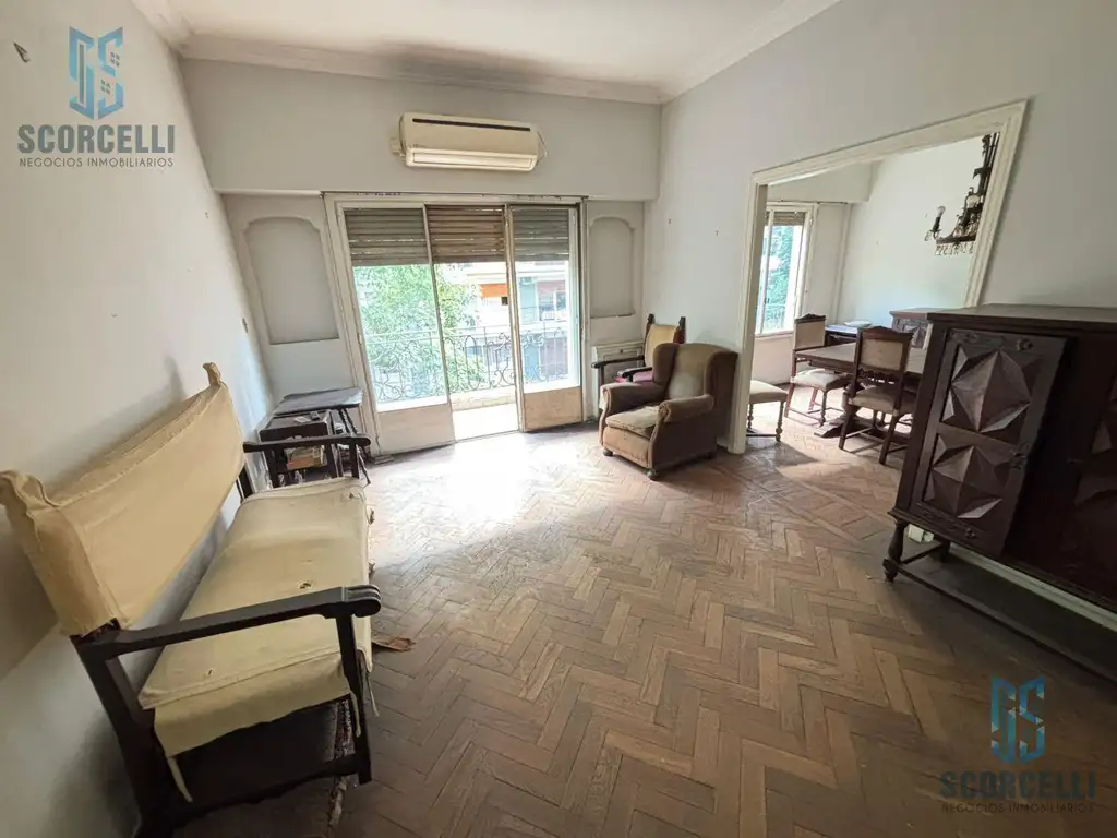Departamento antiguo a refaccionar de 5 Ambientes al frente, tercer piso, con Balcón y amplia baulera.