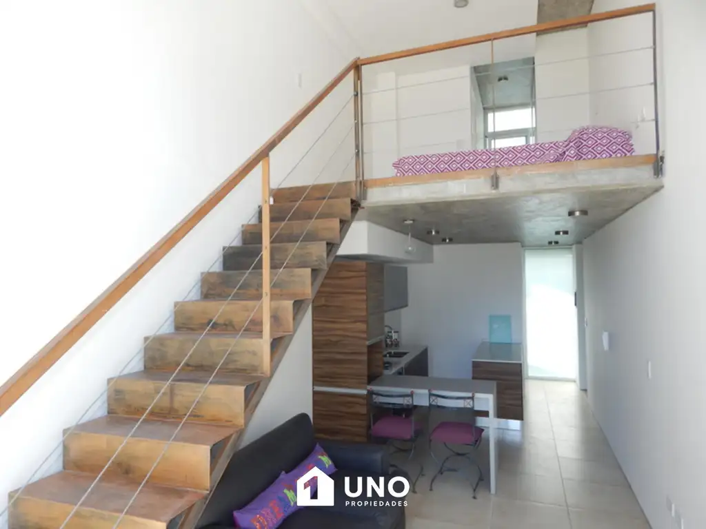 Dúplex externo con frente vidriado orientado al Norte, alquilado hasta Noviembre 2026. Ingresando por el 1º nivel encontramos la cocina semi separada con una isla y barra desayunador, amplio estar/comedor con el frente Norte integramente vidriado, de doble altura, con acceso al balcón aterrazado externo. El 2º nivel cuenta con un dormitorio con placard y baño completo en suite.