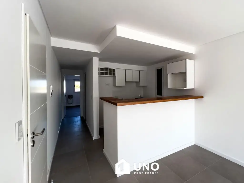 Ingreso a un amplio estar/comedor con balcón terraza al frente. Cocina semiseparada con barra desayunador y ventilación natural. Dormitorio con placard y baño completo con ventilación propia.