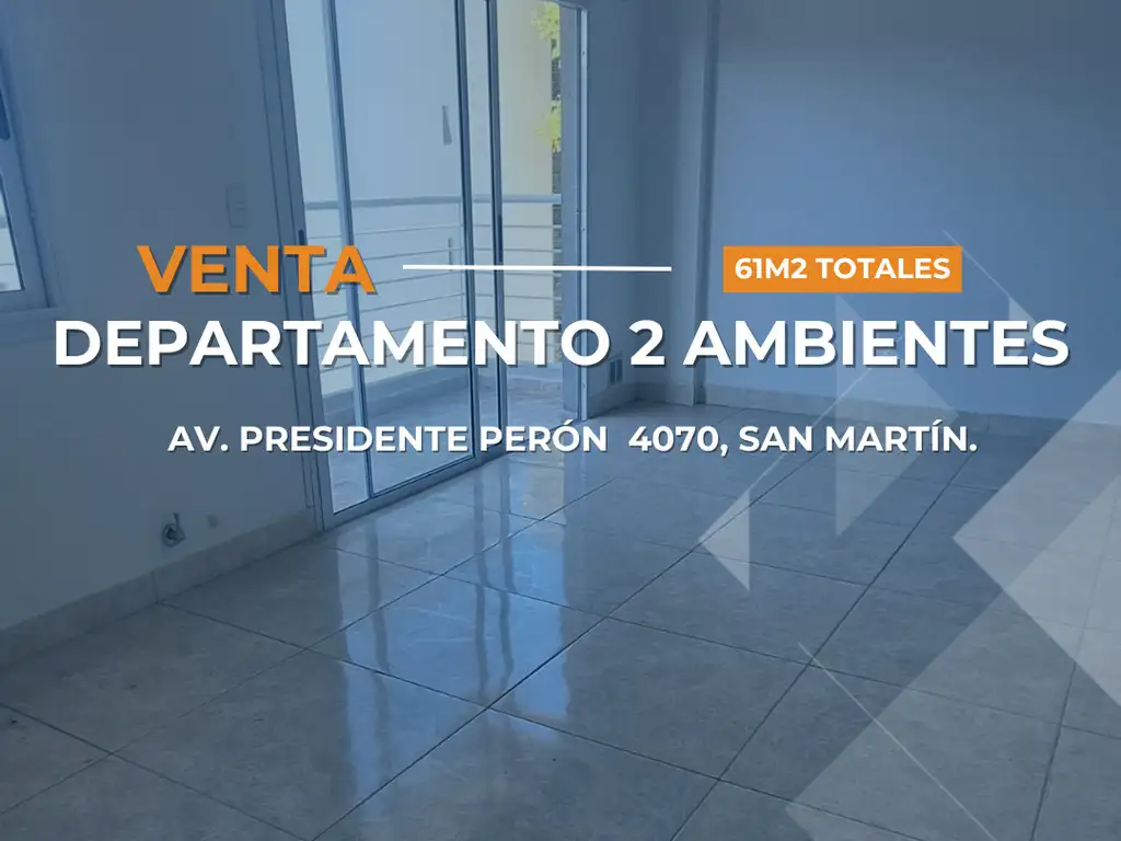 Ubicados sobre Avenida Presidente Perón 4070, San Martín, ¡Estos departamentos de 61m2 totales están listos para vos! Y poseen de ambientes amplios, luminosos y con detalles de categoria.