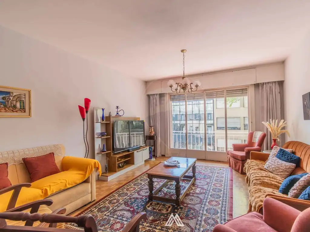 Cuenta con doble puerta de ingreso, principal y de servicio. Se ingresa a un living comedor de buenas dimensiones, muy soleado dada su orientación privilegiada con gran ventanal a Calle Colonia. A continuación encontramos la cocina a reciclar aunque en buen estado de funcionamiento con terraza lavadero de buenas dimensiones y comunicación con dormitorio de servicio con baño reciclado.