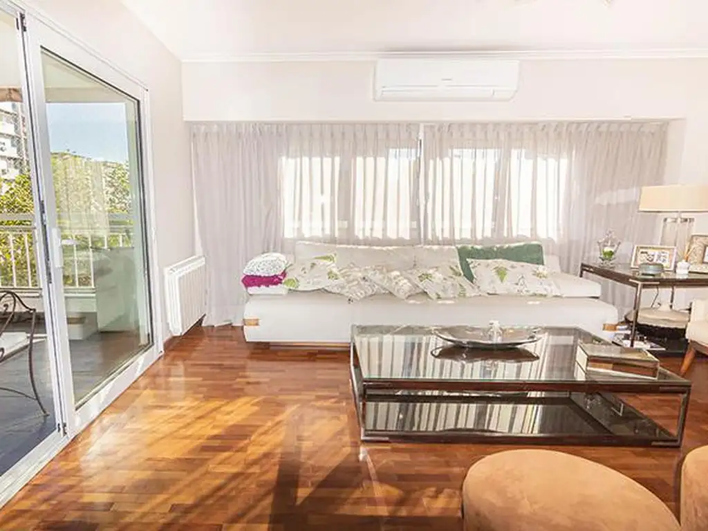 El departamento consta de puertas blindadas, alarma, cuatro aires acondicionados, calefacción por radiadores, aberturas de aluminio, a 30 doble vidrio, amueblamiento sobre y bajo mesada Zurschmitten, anafe, horno empotrado, purificador, placares terminados, piso de parquet, finamente decorado.