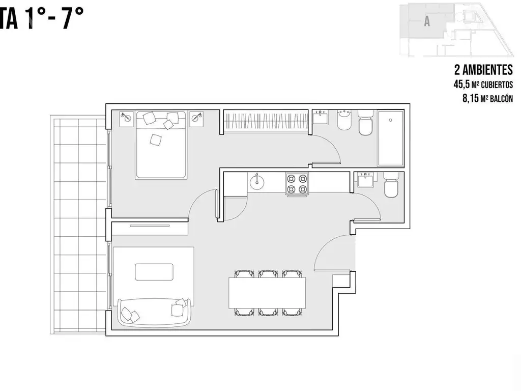 Balcón corrido de 8,15 m2.