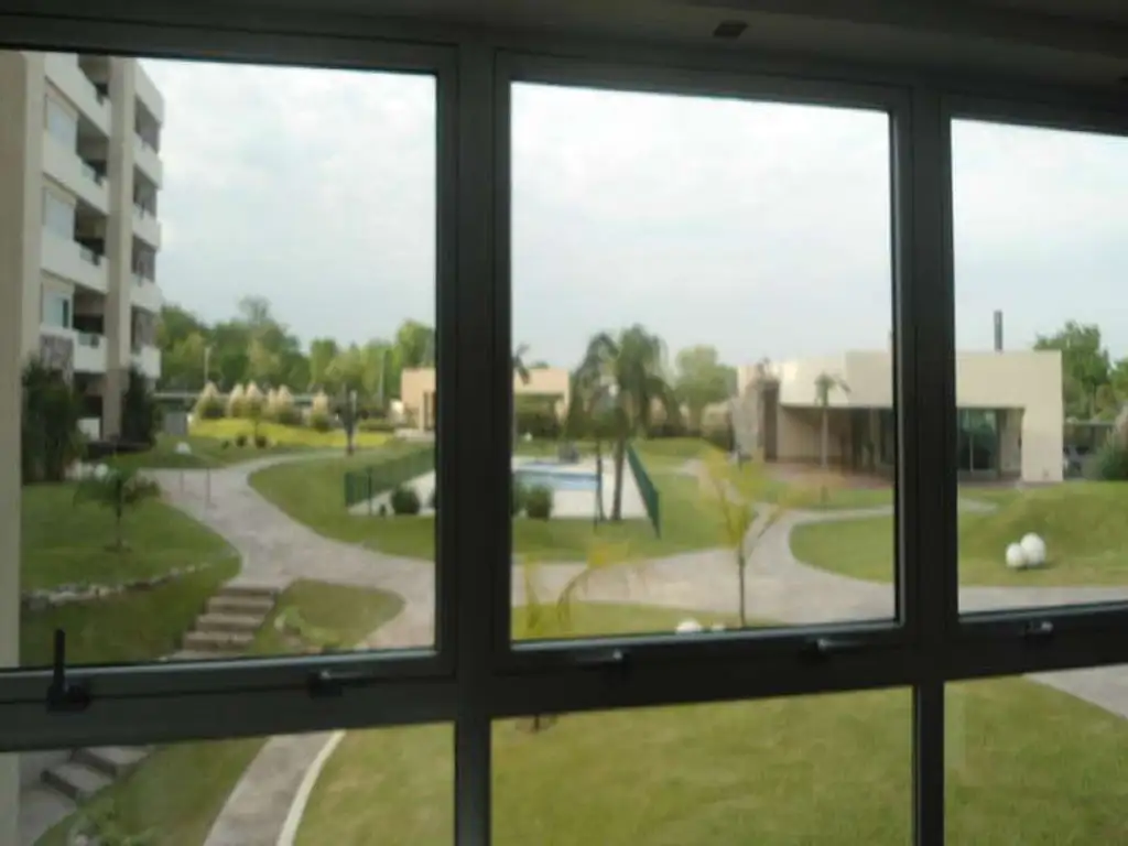 90 m2 aprox, cochera cubierta y todos los beneficios del predio, pileta descubierta,