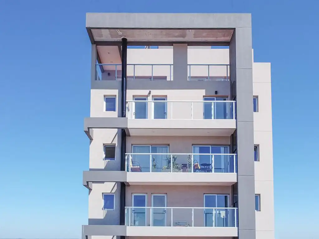 Balcones al frente con deck y parrilla.